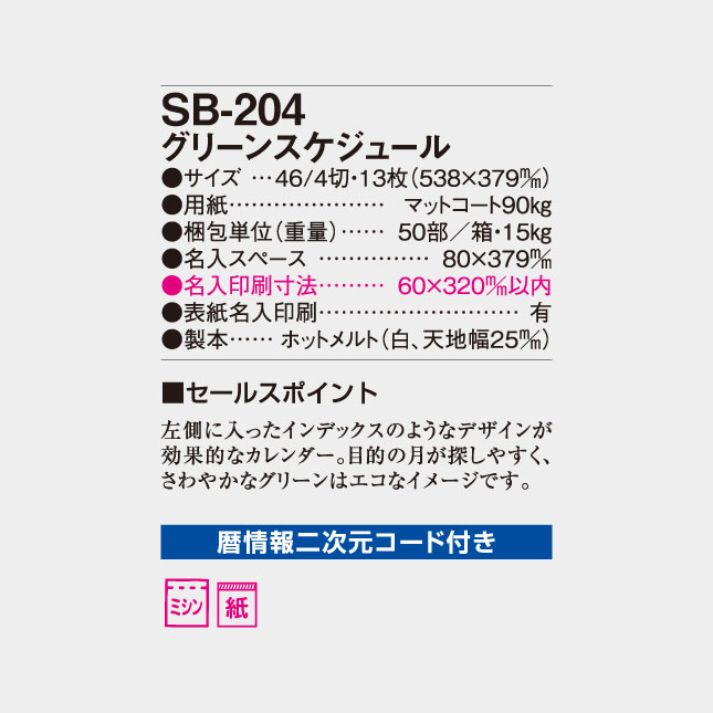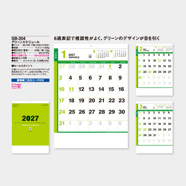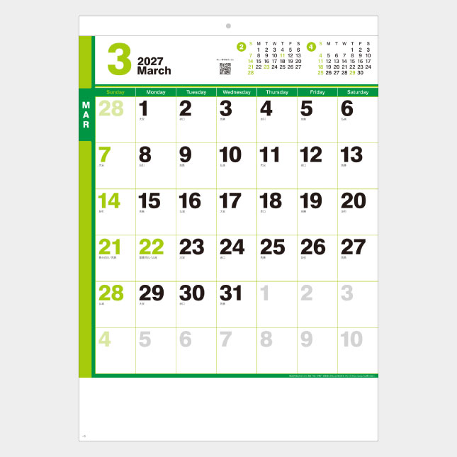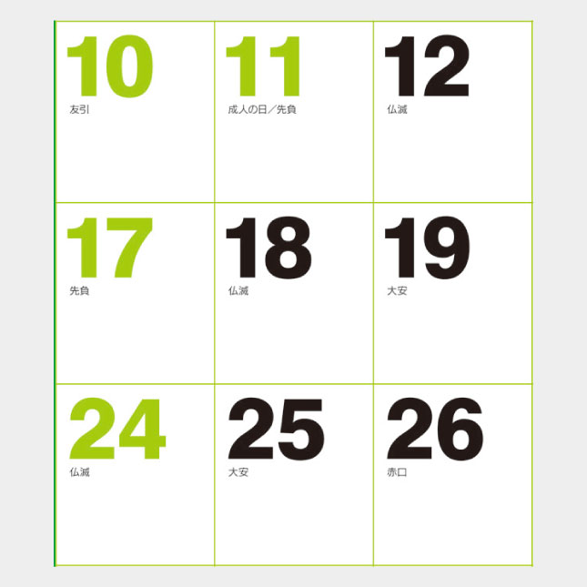 目的の月が探しやすく、さわやかなグリーンはエコなイメージです。