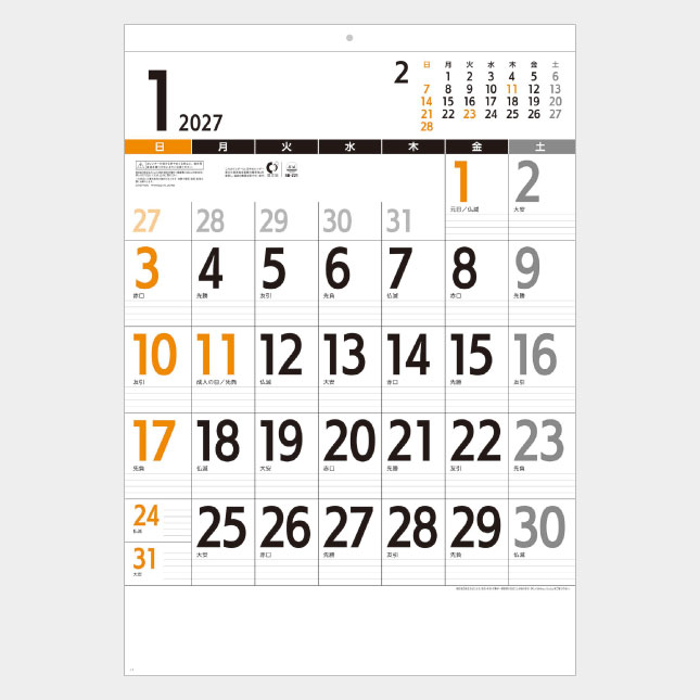 掲載価格は基本色1色です。「名入れ印刷色について」ページをご確認ください。壁掛けの2色以上のカラー刷り・価格表にない冊数についてはお見積をご依頼ください。 |