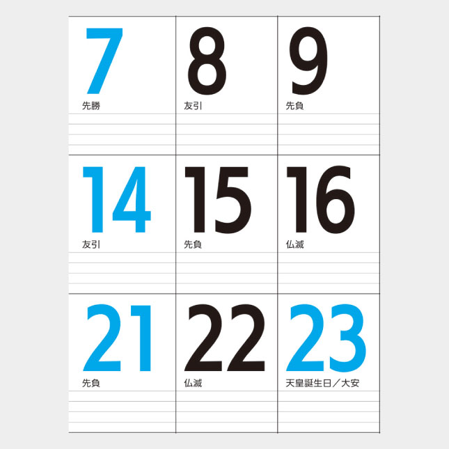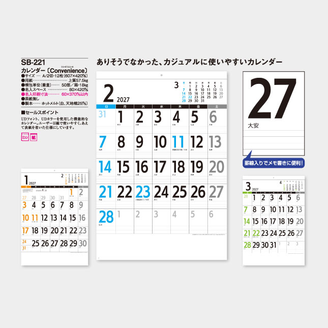 UDフオント、UDカラーを使用した機能的なカレンダー。