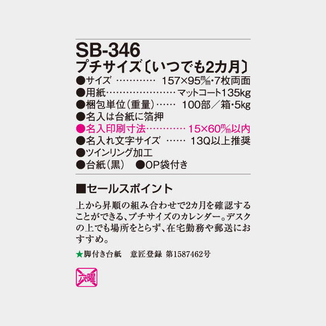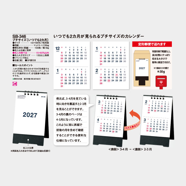 SB-346 卓上名入れカレンダー プチサイズ〔いつでも2カ月〕の特徴