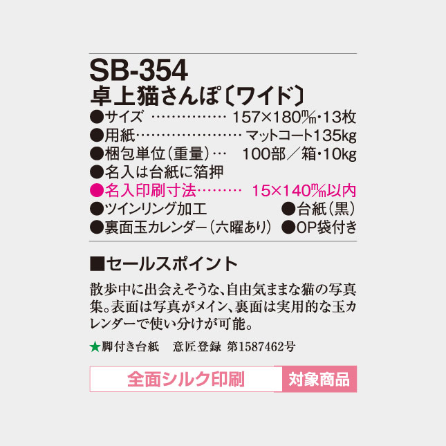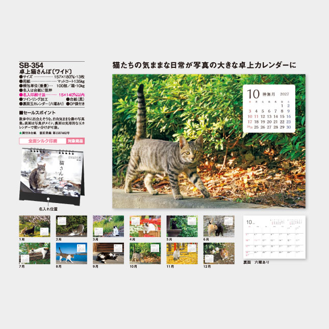 SB-354 卓上名入れカレンダー 猫さんぽ(ワイド)