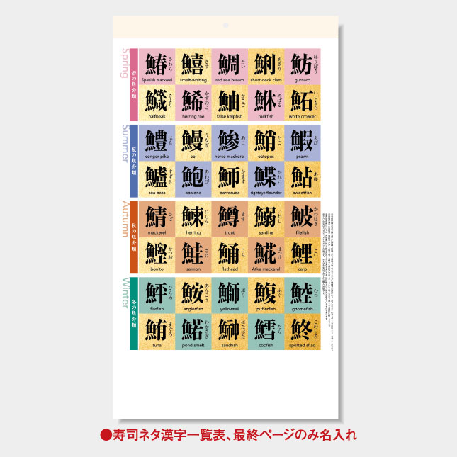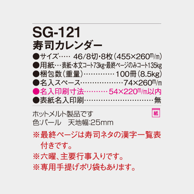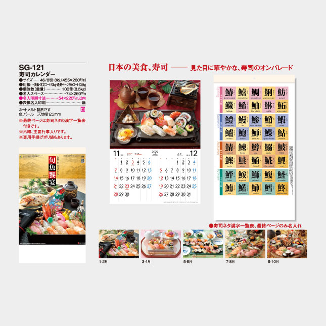 SG-121 寿司カレンダー 壁掛け名入れカレンダー