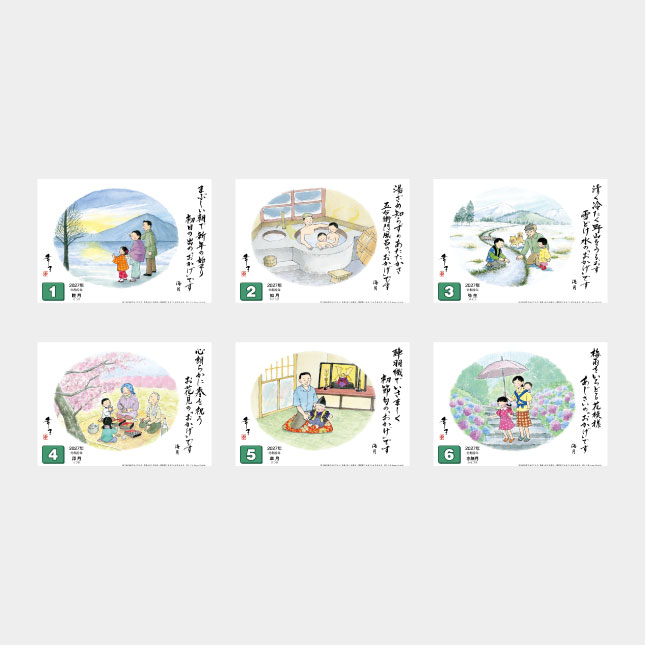 ※「おかげさま」にちなんだ添え書きを各月にあしらっています。