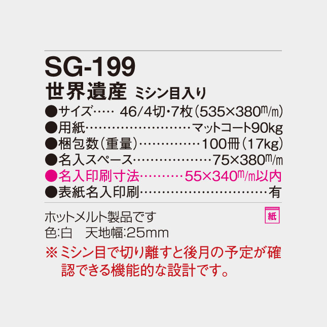 SG-199 世界遺産 ミシン目入り【535×380mm 46/4切】