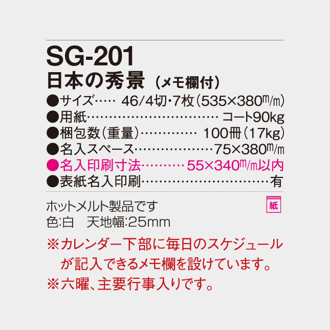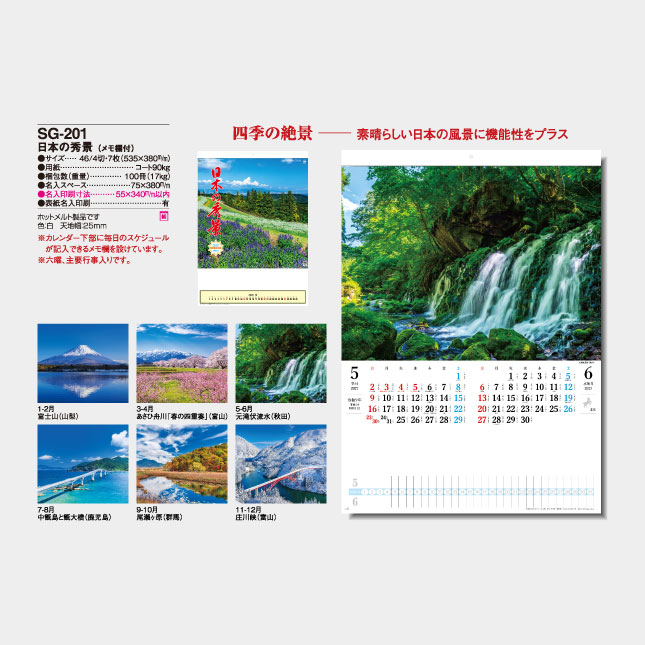 SG-201 日本の秀景(メモ欄付) 壁掛け名入れカレンダー