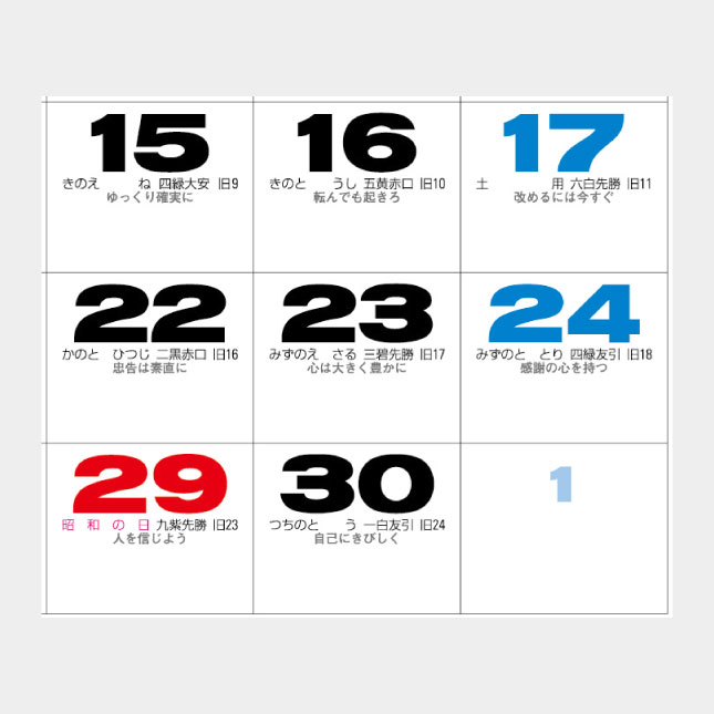 ※六曜・旧暦・主要行事入りです。