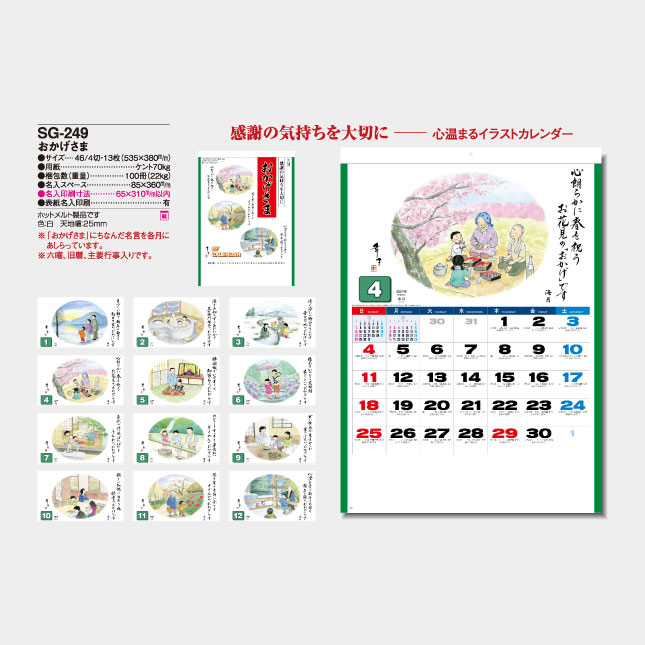 SG-249 おかげさま 壁掛け名入れカレンダー