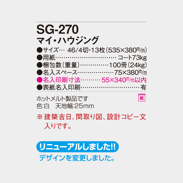 SG-270 マイ・ハウジング 壁掛け名入れカレンダー