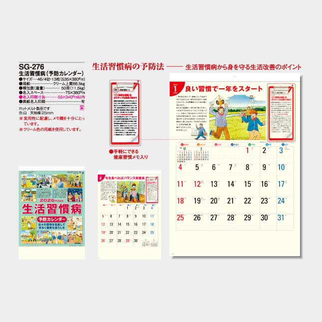 SG-276 生活習慣病(予防カレンダー) 壁掛け名入れカレンダー