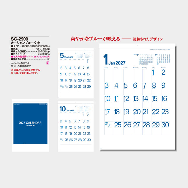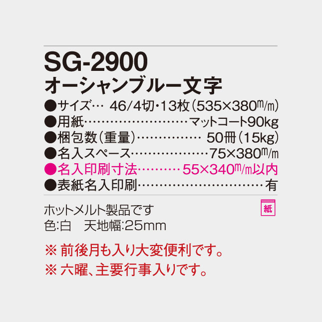オーシャンブルー文字 SG-2900 文字月表 名入れカレンダー
