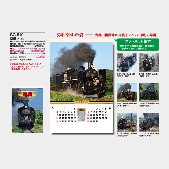 SG-510 雄姿 フィルム(蒸気機関車 SB-295) フィルム名入れカレンダー