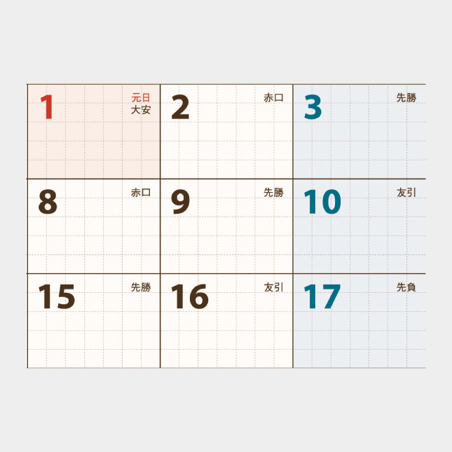 ・カレンダーの背面にグリッドがあることで、文字をバランスよく書くことができます。