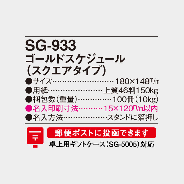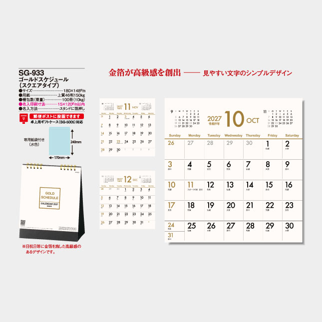 SG-933 卓上名入れカレンダー ゴールドスケジュール(スクエアタイプ)