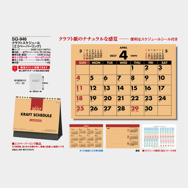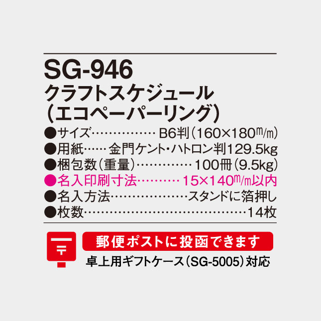 SG-946 卓上名入れカレンダー クラフトスケジュール