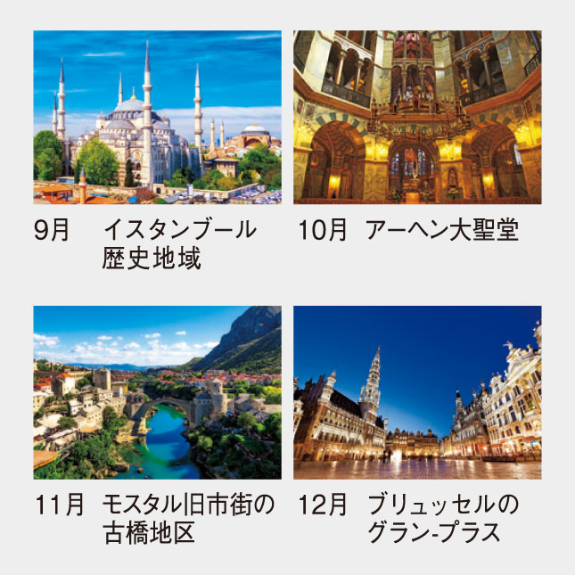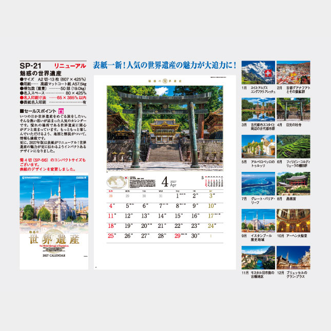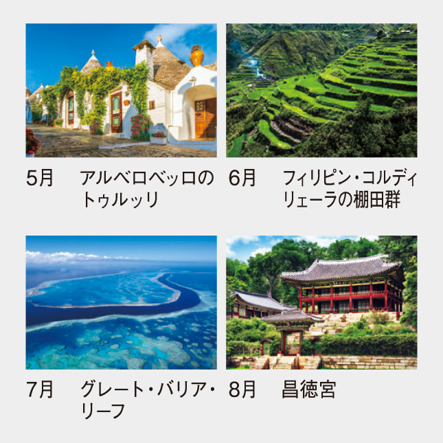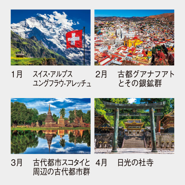 いつの日か世界遺産をめぐる旅をしたい、そんな熱い思いが詰まった人気のカレンダーです。