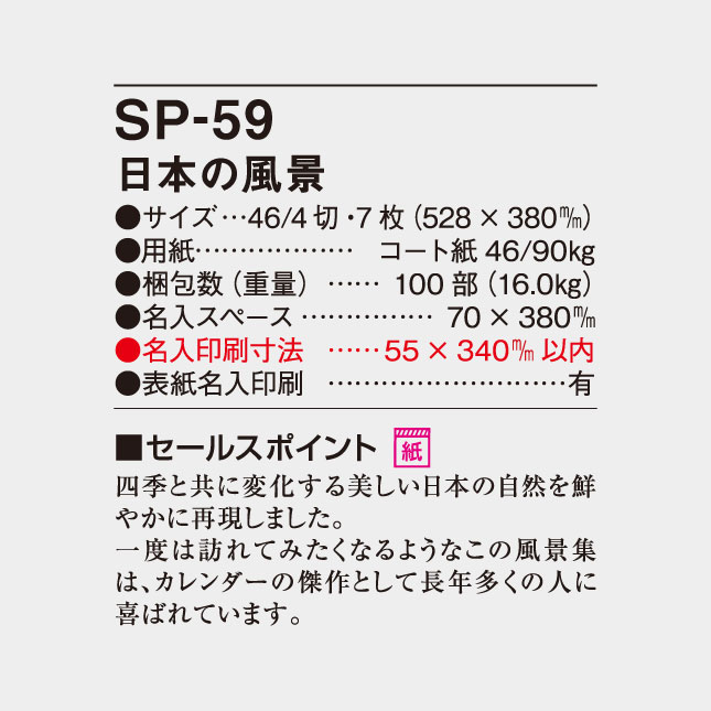 SP-59 日本の風景 壁掛け名入れカレンダー