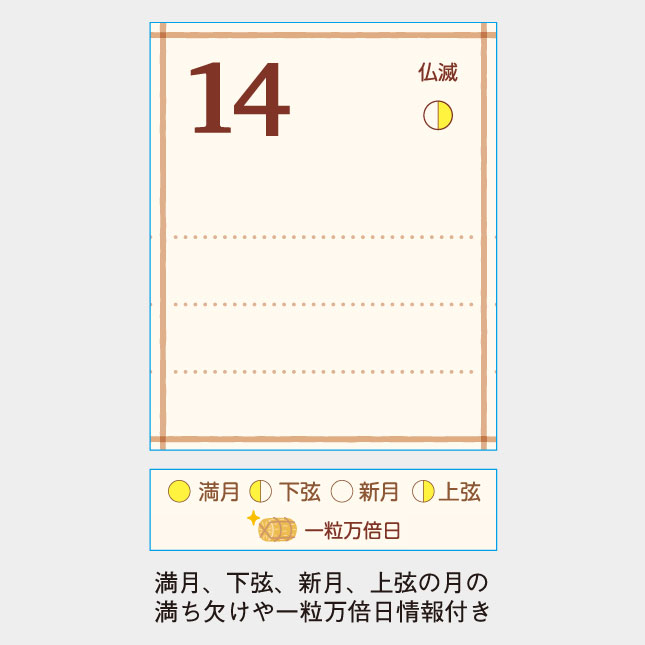 ●満月、下弦、新月、上弦の月の満ち欠け情報付き
