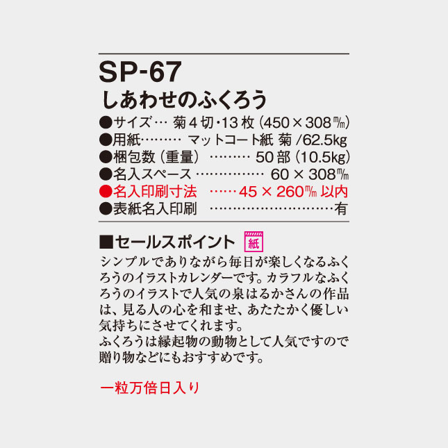 SP-67 しあわせふくろう 名入れカレンダーの特徴
