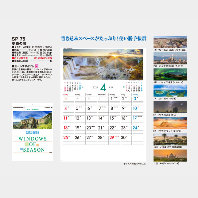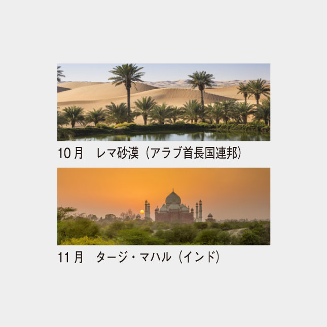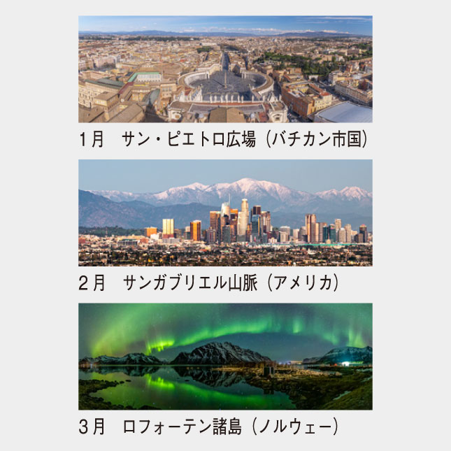世界の景勝地を撮影したパノラマ写真をワンポイントに、機能性を重要視したカレンダーです。