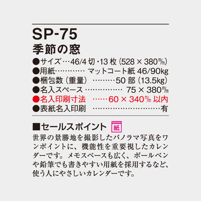 SP-75 季節の窓 壁掛け名入れカレンダー