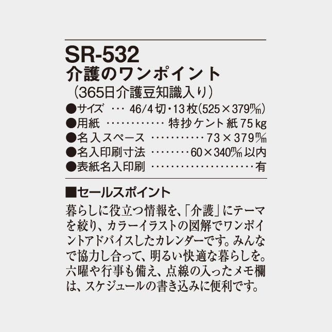 SR-532 介護のワンポイント(365日介護豆知識入り) 名入れカレンダー