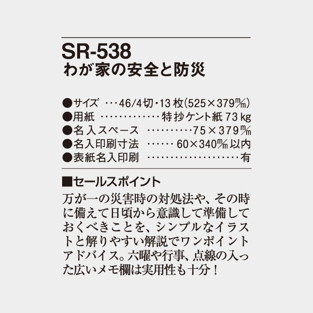 SR-538 わが家の安全と防災(NK-437) 名入れカレンダー