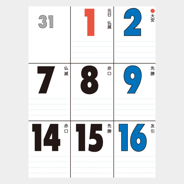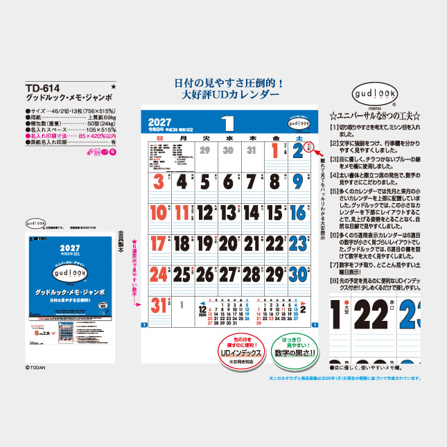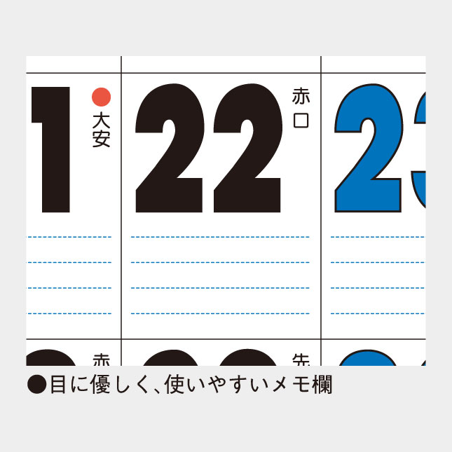 文字が見やすい、メモもしやすい 大好評ユニバーサルデザインのカレンダー