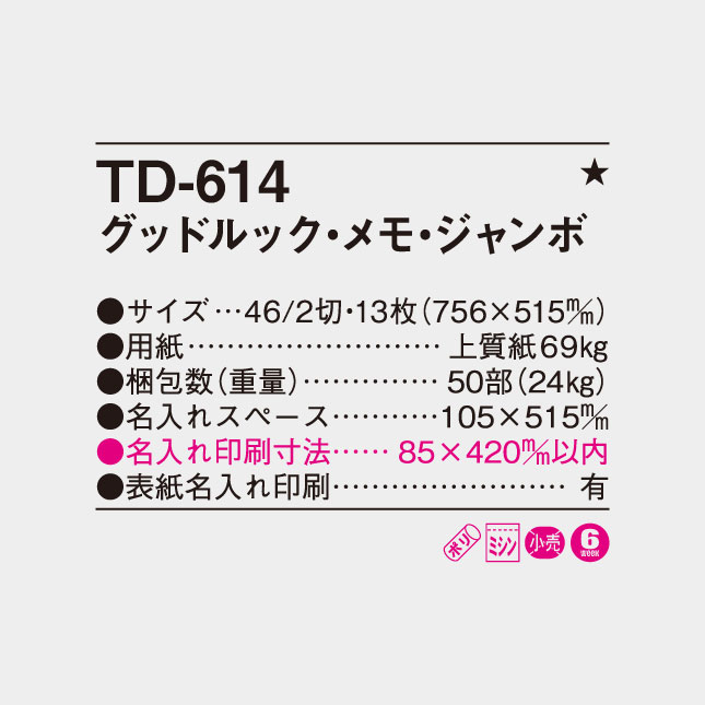 TD-614 グッドルック・メモ・ジャンボ 756×515mm 46/2切