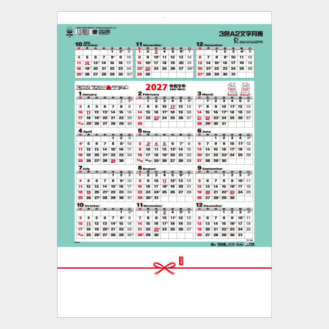 掲載価格は基本色1色です。「名入れ印刷色について」ページをご確認ください。壁掛けの2色以上のカラー刷り・価格表にない冊数についてはお見積をご依頼ください。 |