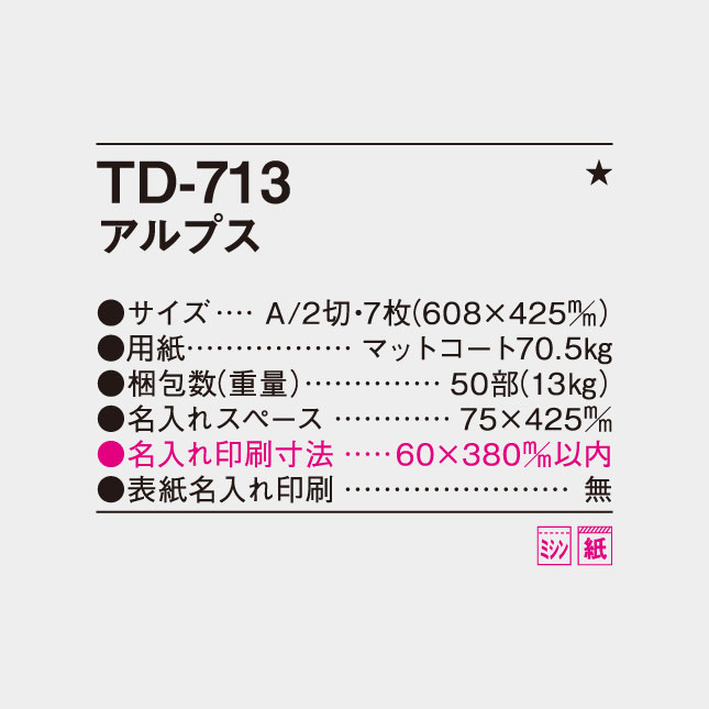 TD-713 アルプス 壁掛け名入れカレンダー