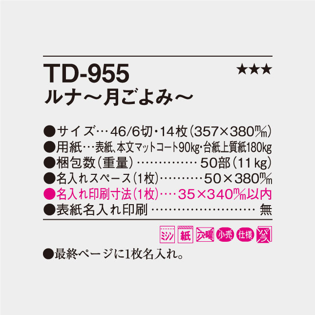 TD-955 ルナ・月ごよみ 壁掛け名入れカレンダー