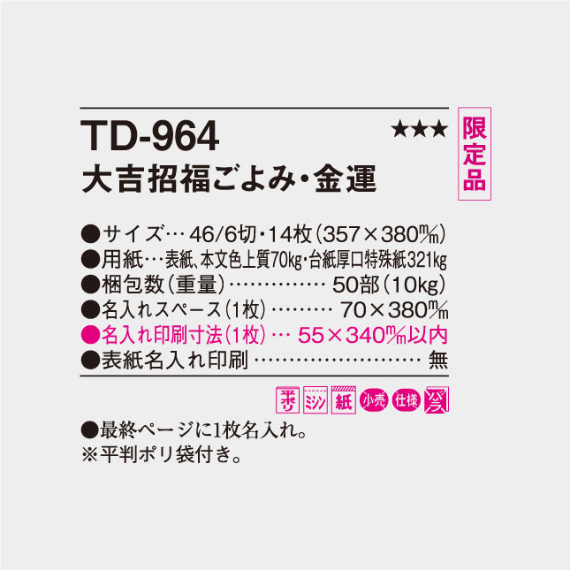 TD-964 金運カレンダーの特徴