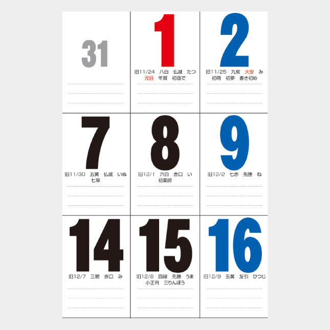 すっきり見やすい使いやすい。ジャンボ文字月表の基本形。