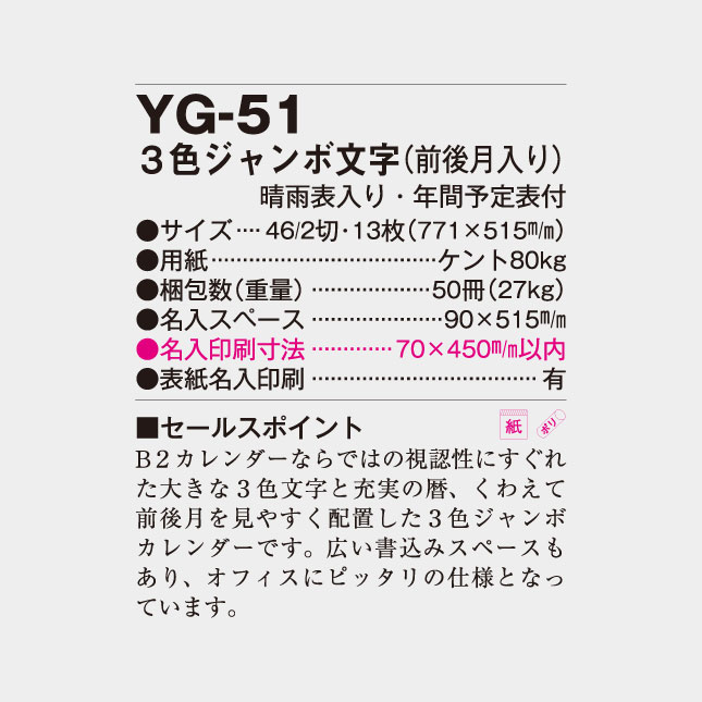 YG-51 3色ジャンボ文字(前後月入り)(HB-103)