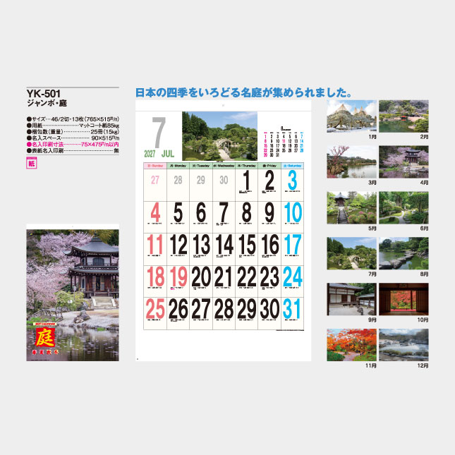 日本の四季を彩る名庭が集められました。ジャンボサイズの庭カレンダーです。