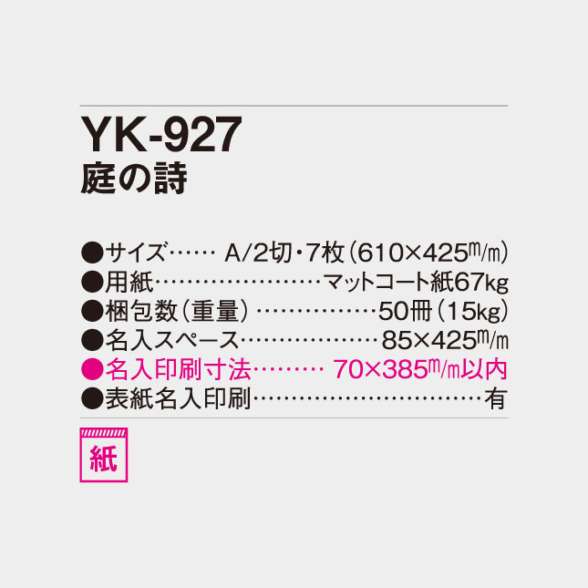 掲載価格は基本色1色です。「名入れ印刷色について」ページをご確認ください。壁掛けの2色以上のカラー刷り・価格表にない冊数についてはお見積をご依頼ください。